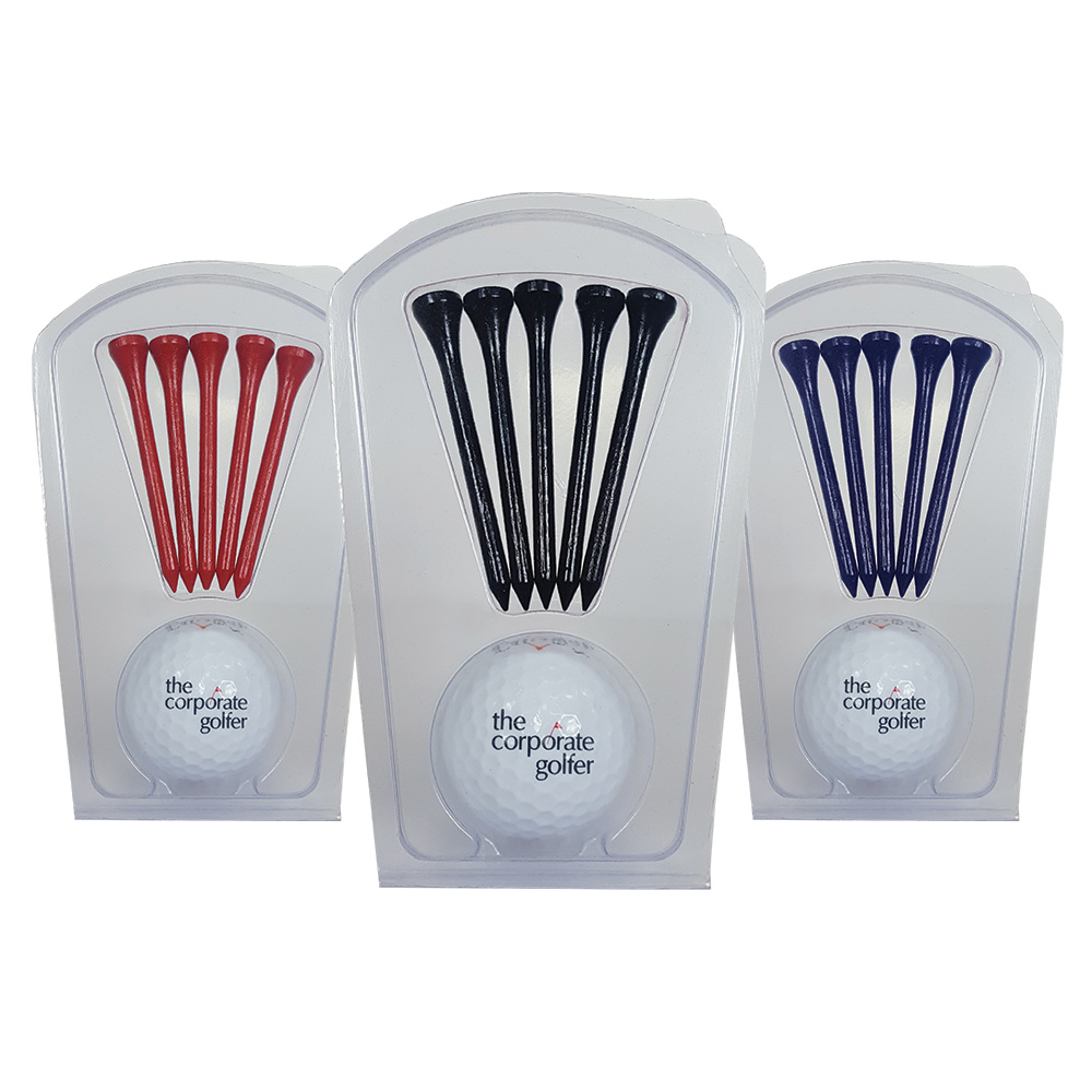 The 1 Ball 5 Tee Shell Pack is the perfect accessory for corporate golf days or as a corporate gift for golf enthusiasts. This pack includes 1 golf ball and 5 tees, customised with your logo, packaged in a sleek shell.