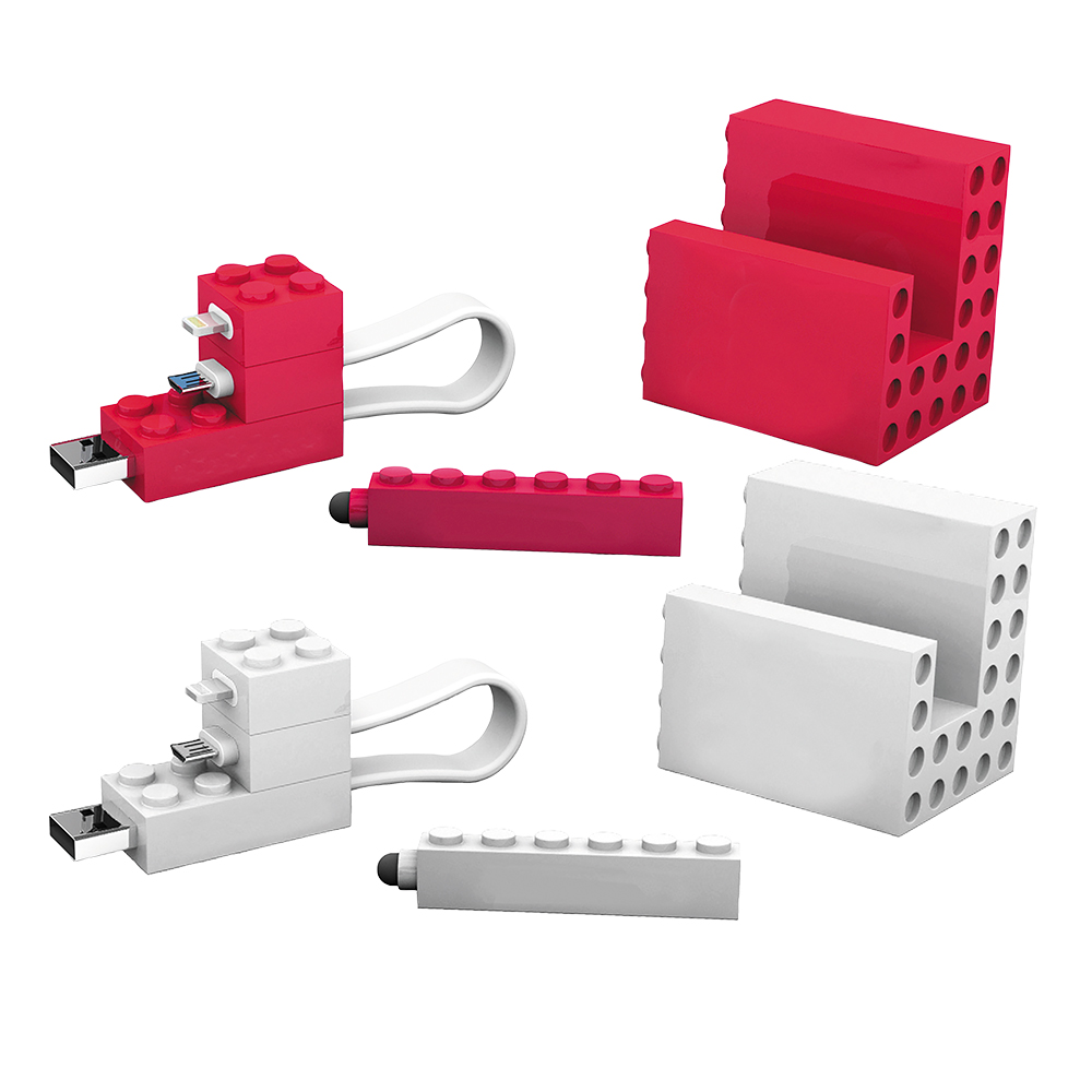 Office blocks 3 piece stationary set. Phone stand, stylus & mobile cable set with micro USB and lightening connectors. Available in 2 colours.