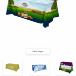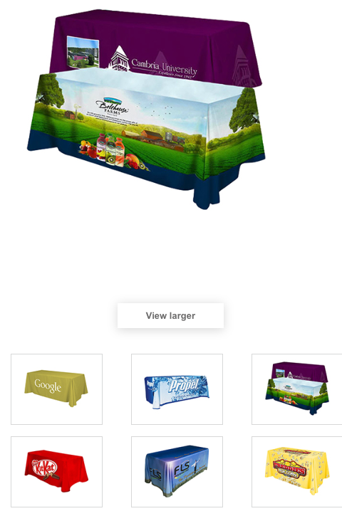 Create a custom tradeshow display with our promotional tablecloth range! The polyester fabric is machine washable that can be reused over and over again. It is ideal for promo events and tradeshows. Styles available include: 4 sided fitted, 3 sided fitted, fitted with zipper back, 4 sided throw over and 3 sided throw over styles. It available in 3 different sizes of each styles, which include (Small) 4ft, (Medium) 6ft, (Large) 8ft. Material Options: Standard 300D Poly-Wrinkle Resistant:175g/m2 Premium 300D Poly-Wrinkle Resistant & Flame Retardant:175g/m2 Deluxe 300D Poly-Waterproof,Oilproof,Wrinkle Resistant & Stain-Resistant:175g/m2 160g Fine Twill Fabric with Tightness:160g/m2 250g Soft Knitted Silky Options:257g/m2 Standard pack includes: Table cloth & Opp bag Lead time is from confirmation of artwork approval. Lead time refers to dispatch, final delivery time will depend on location and type of courier used.