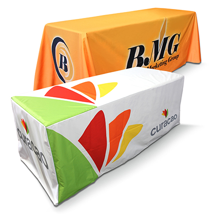 Create a custom tradeshow display with our promotional tablecloth range! The polyester fabric is machine washable that can be reused over and over again. It is ideal for promo events and tradeshows. Styles available include: 4 sided fitted, 3 sided fitted, fitted with zipper back, 4 sided throw over and 3 sided throw over styles. It available in 3 different sizes of each styles, which include (Small) 4ft, (Medium) 6ft, (Large) 8ft. Material Options: Standard 300D Poly-Wrinkle Resistant:175g/m2 Premium 300D Poly-Wrinkle Resistant & Flame Retardant:175g/m2 Deluxe 300D Poly-Waterproof,Oilproof,Wrinkle Resistant & Stain-Resistant:175g/m2 160g Fine Twill Fabric with Tightness:160g/m2 250g Soft Knitted Silky Options:257g/m2 Standard pack includes: Table cloth & Opp bag Lead time is from confirmation of artwork approval. Lead time refers to dispatch, final delivery time will depend on location and type of courier used.