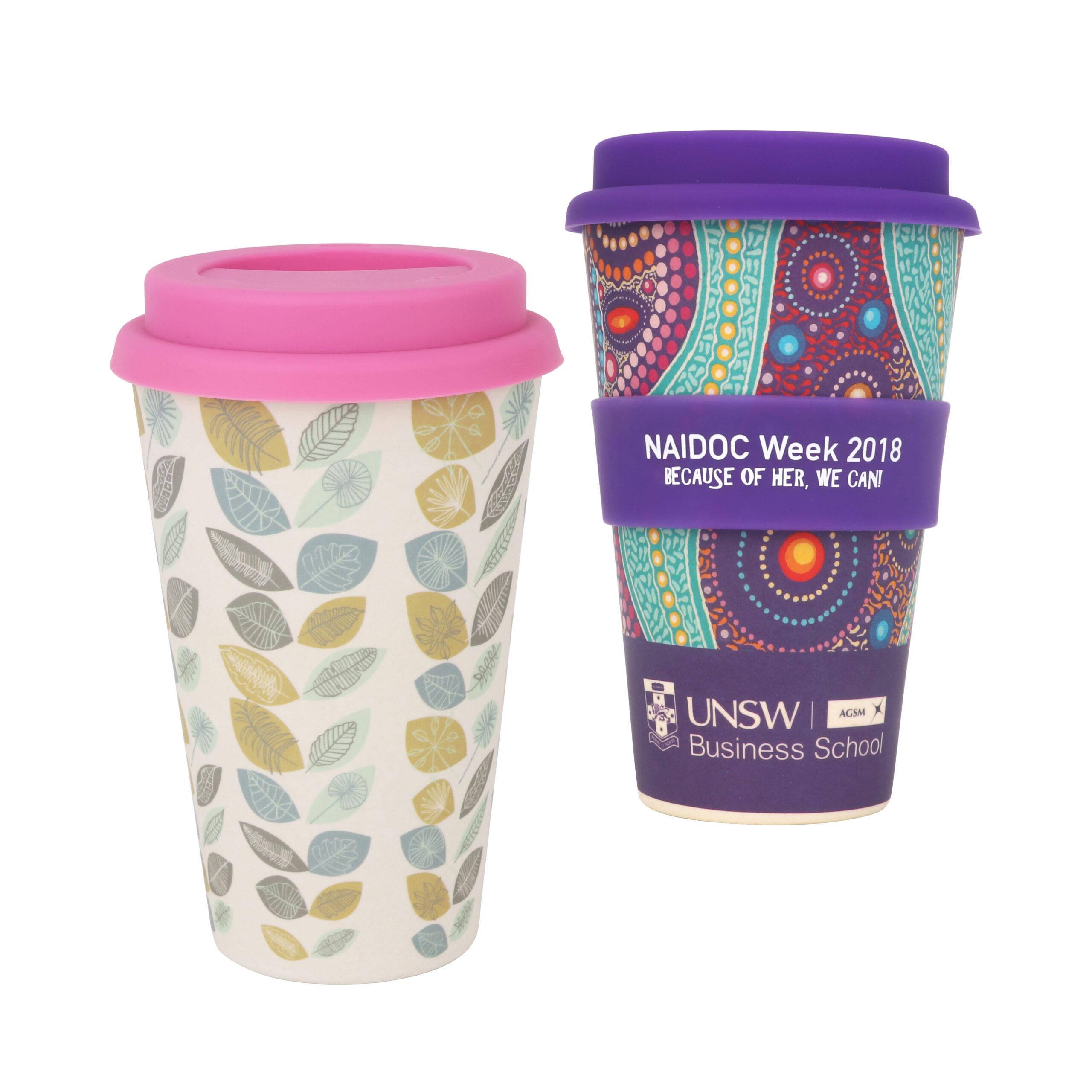 Reusable coffee cup has a 400ml capacity with a heat resistant silicon band and a screw on lid. It is manufactured from tough BPA free, food grade and dishwasher safe material. The cup's wall can be fully printed with any logos, and the silicon colour can be customized. It comes with a standard Opp bag and you can choose the optional standard paper package or customized package at extra cost. Material - Bamboo Fiber & Silicon