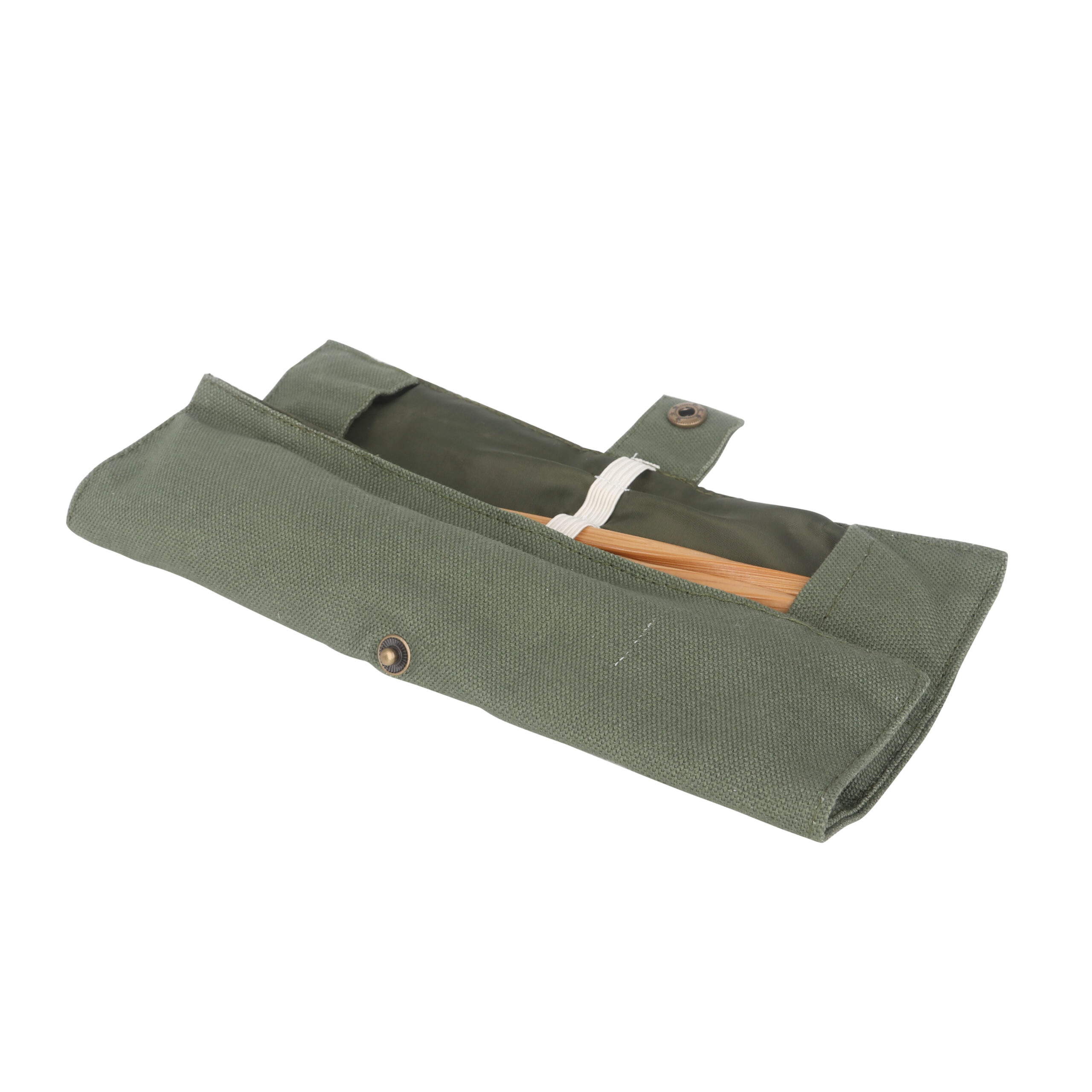This bamboo cutlery set is a travel-friendly and eco-friendly promotional giveaway. It is supplied with 6 pieces bamboo utensils set, including a pair of chopsticks, a spoon & fork, straw, and knife & brush. This product is perfect for employees to use at work. A canvas pouch is included to keep all utensils neat and can be printed with your company name and logo. Spoon: 20 x 4cm Fork: 22 x 2.7cm Knife: 20 x 2cm Chopsticks: 20 x 0.7 cm Straw: 18 x 0.8 cm Brush: 20 cm