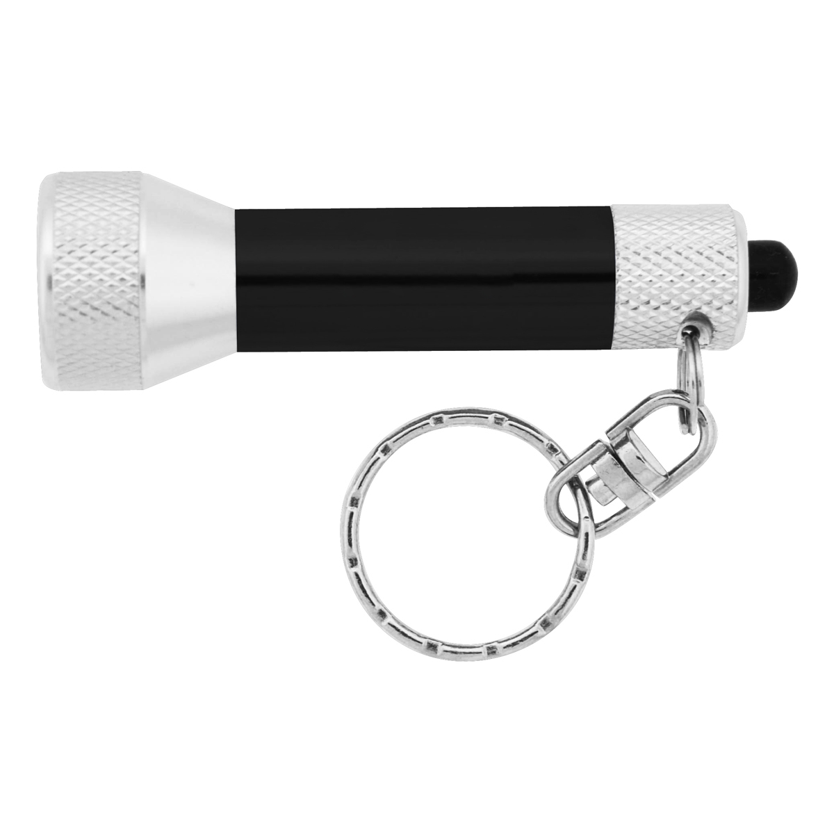 An aluminium flashlight with seven super bright white LED lights, a carabiner key chain and 4 cell button batteries (included). Price includes choice of laser engraving or one colour pad printed logo. We recommend laser engraving. Individually packaged in a white box.