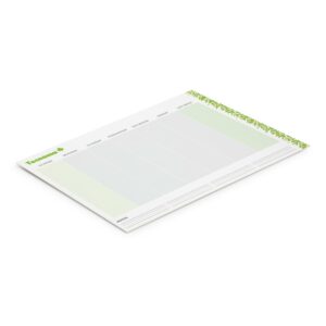Desk planner pad with 25 leaves (50 pages) of good quality 70gsm paper and a cardboard back. It is printed using four colour process which gives the option of unlimited spot colours or stunning full colour at no extra cost but PMS colour matches are only approximate. The artwork can bleed off on all four sides and a production lead time of 10 working days applies to this product. This item can only be ordered in the quoted order quantities.