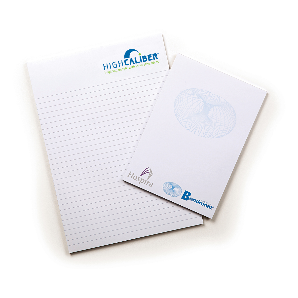 An extremely popular promotional item. Our Note Pads are available in A5 format. Printed in 4 colour process. The sheets are glued at the head. This range has proved a highly successful and long life promotional product. 25 leaves per pad (with strawboard backing)