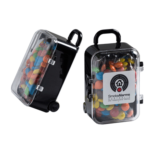 Acrylic Carry-on Case filled with Mini M&Ms 50g Note: Ingredient Info: On each item (Sticker)