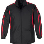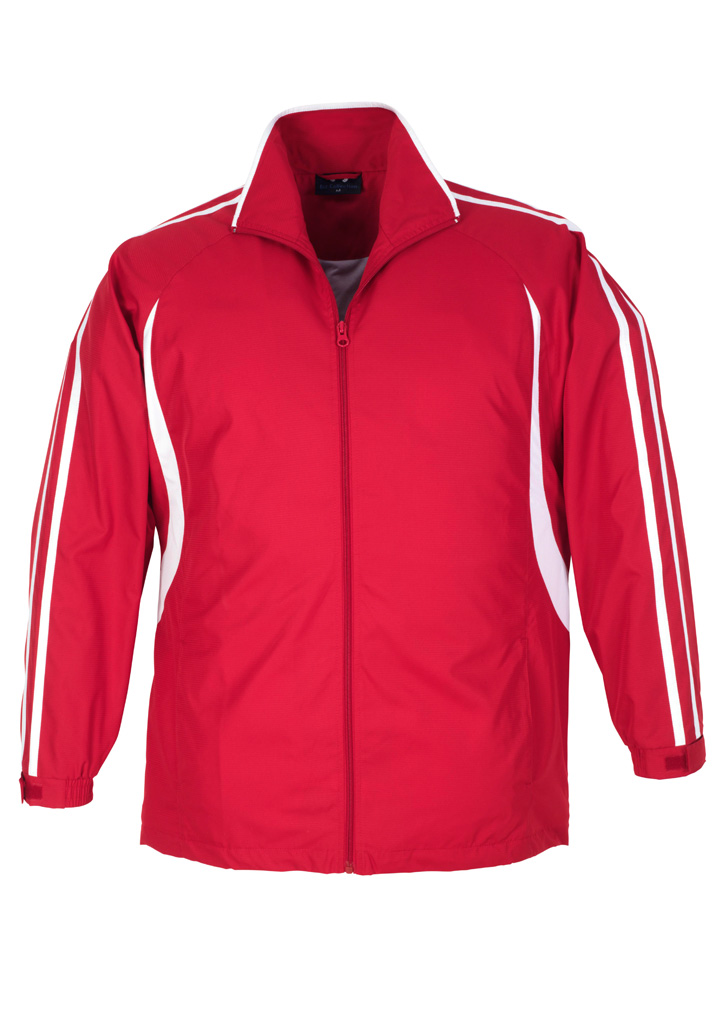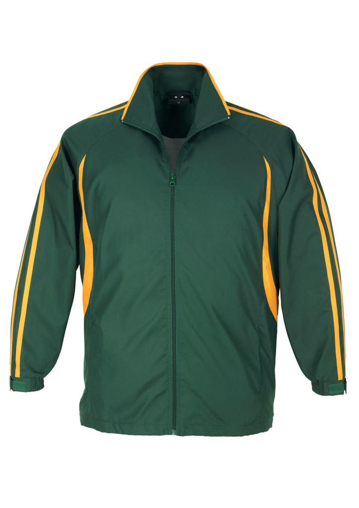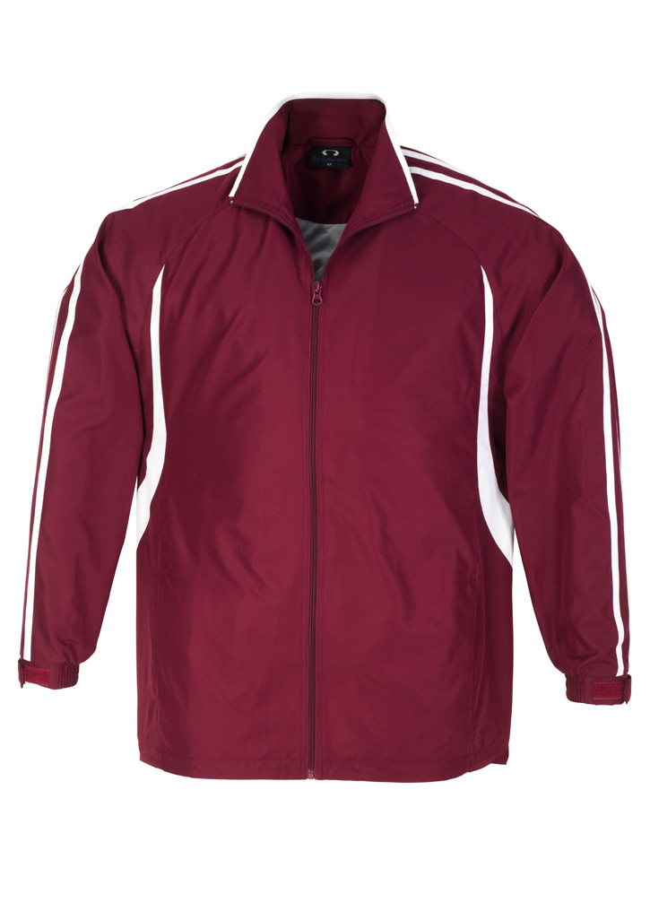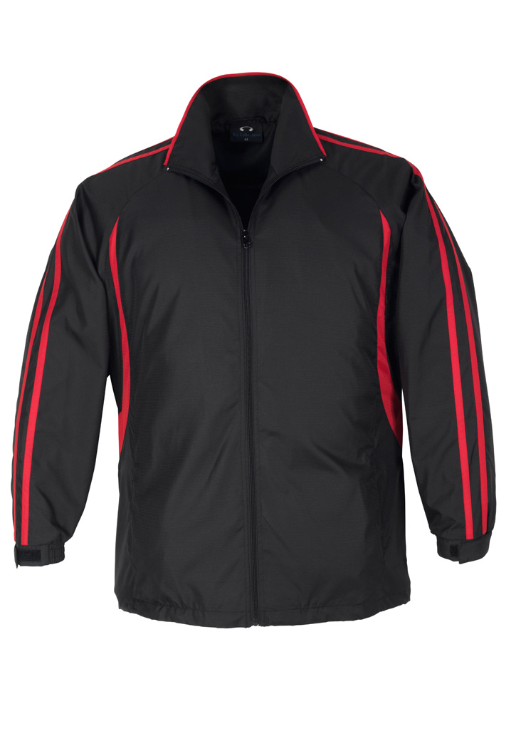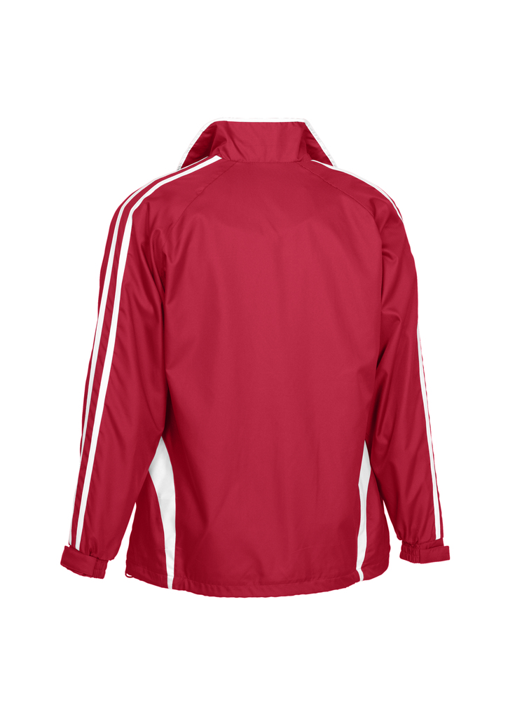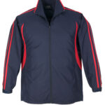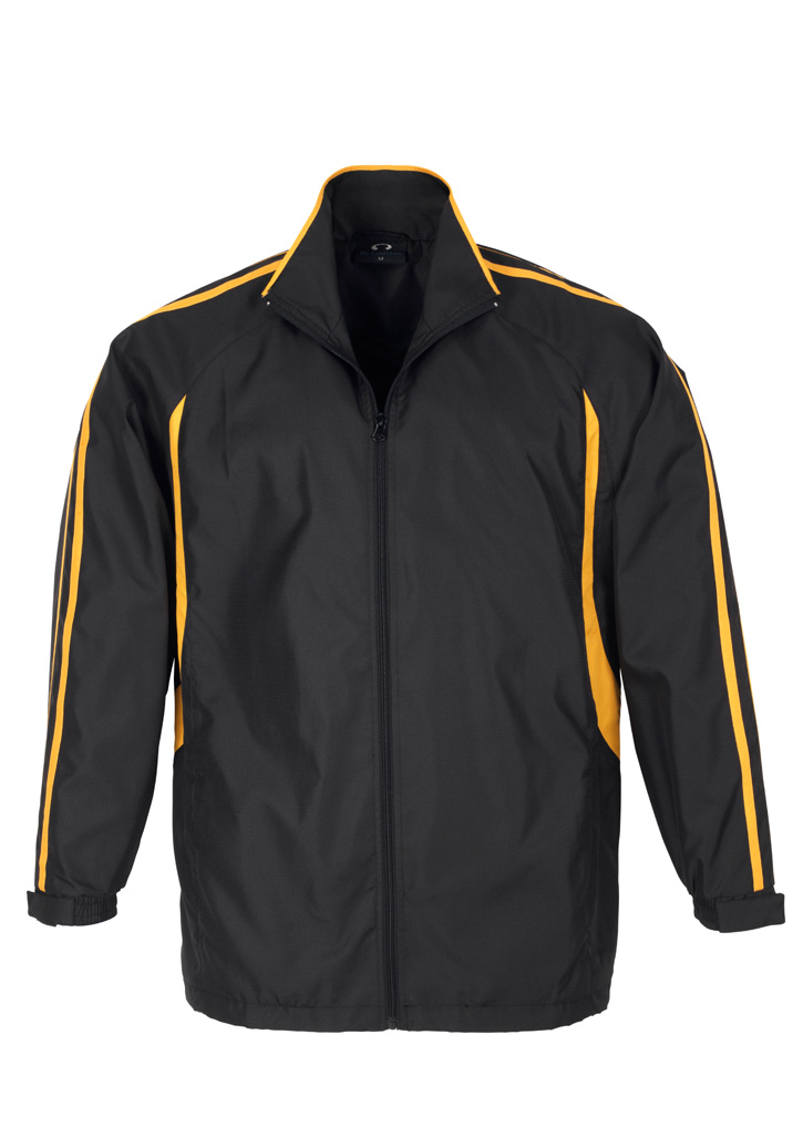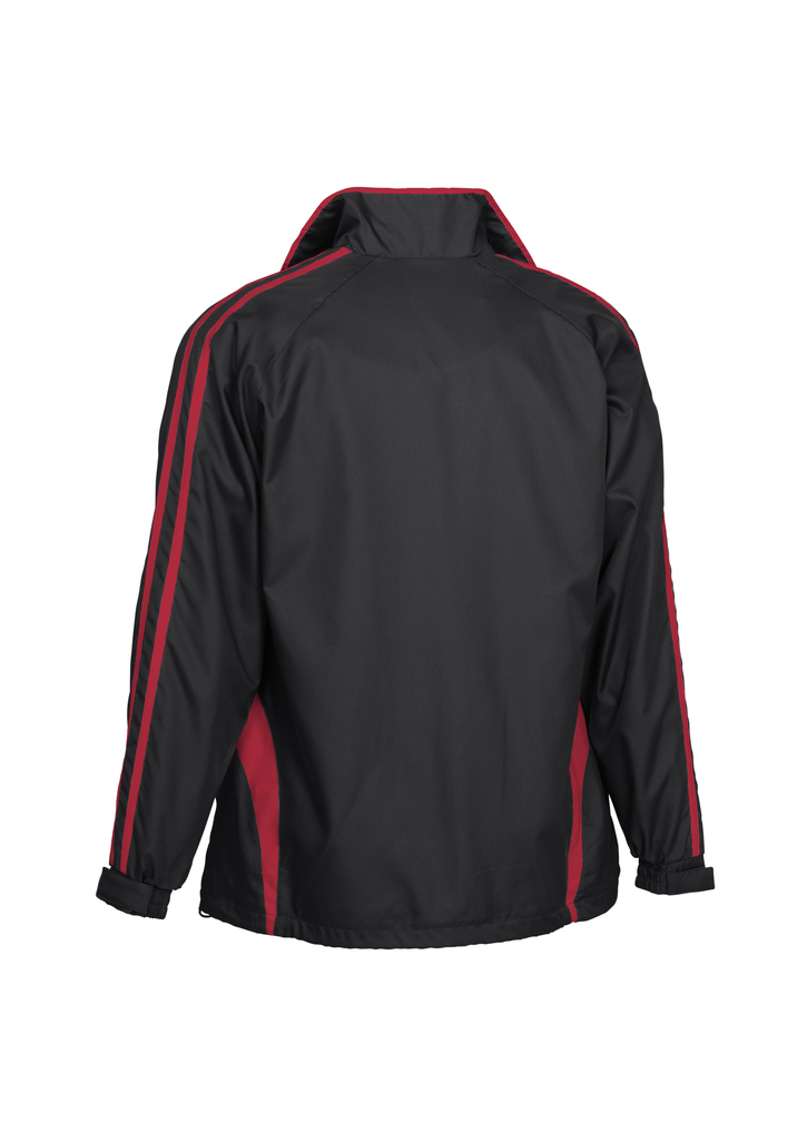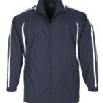 Outer: 100% Micro Fibre Jacquard Ripstop with Micro Fibre panels Body inner: Single jersey lining Sleeve inner: 100% Polyester Taffeta lining Raglan sleeve top with flash splice and twin stripe detail, full zip front with two zippered pockets, zipper access for embroidery, elasticated sleeve cuffs with adjustable flap.