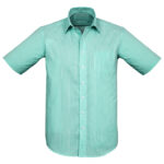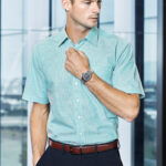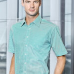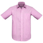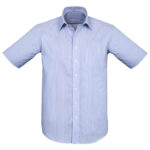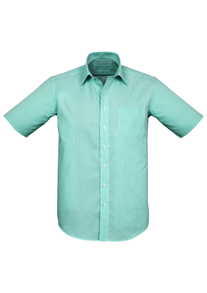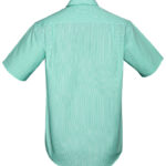 60% Polyester 40% Cotton. Executive-fit yarn dyed stripe shirt, two action back pleats, front pocket.