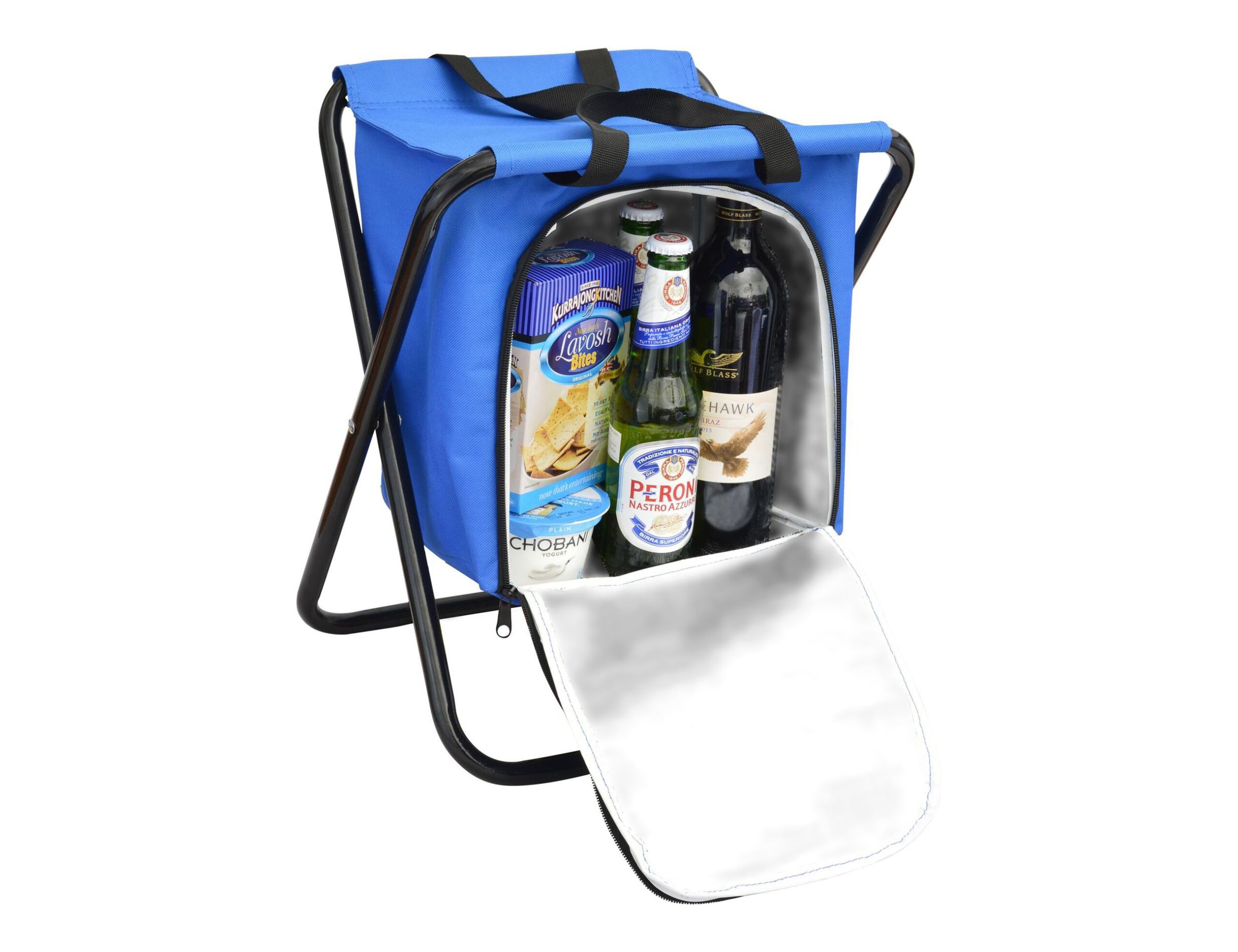 This quality 2-in-1 gift is both a seat and a cooler bag. Made from tough 600d nylon with a super-tough black metal frame and carry handles, it features a fully insulated cooler compartment designed to keep food and drink cool for hours. Available in blue, black or navy.