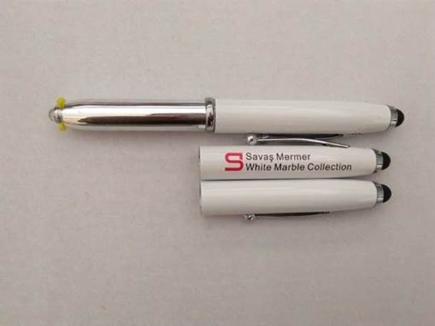 Reversible pen light. Base separates from the pen and can be reversed to expose a push on LED light or a ballpoint pen. Clip portion is covered in a rubberised finish with a matching stylus tip. Pens supplied with black ink and shipped with isolator to prevent light from activating. Each pen engraves to expose a stunning mirror finish.