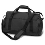 Superior large duffle bag which is manufactured from polycanvas with a water-resistant PU coating and decorative black zips and piping. It has strong woven carry handles with a Velcro cuff and a woven shoulder strap that is adjustable and removable. Aquinas has three zippered external pockets, two of which are shoe bags that can also be used for wet gym gear etc. Other features include a sturdy internal baseboard and strong external plastic feet.
