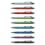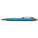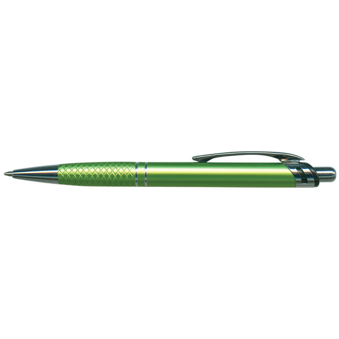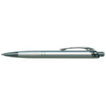 Retractable aluminium ball pen with a matt anodised barrel and shiny Chrome accents. It has a Black ink refill with 800 metres of ink and the barrel laser engraves to an oxidised White colour. Unbranded. Decoration options: Pad Print | Screen Print | Laser Engraving