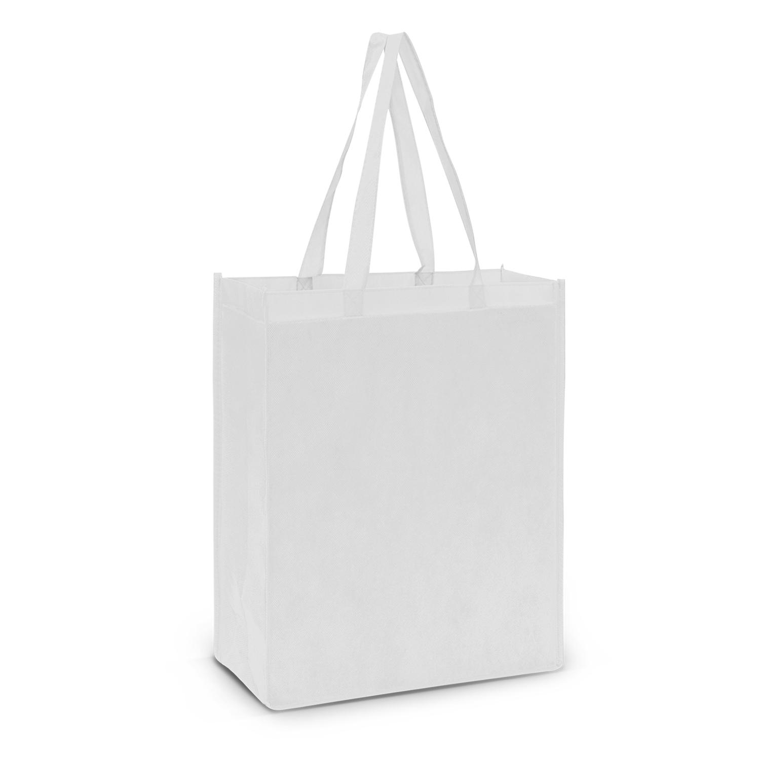 Reusable tote bag with a 90mm gusset and longer carry handles so it can be carried on the shoulder. Manufactured from 80gsm eco-friendly non-woven material which is able to be recycled. . Decoration options: Screen Print | Digital Transfer
