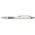 Retractable plastic and metal ball pen with a metallic barrel, soft rubber accents in the grip zone and shiny Chrome trim. Black ink, large volume refill with 1800 metres of German manufactured DOKUMENTAL ink and a tungsten carbide ball for improved writing quality. Decoration options: Pad Print | Screen Print | Direct Digital