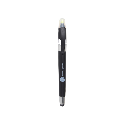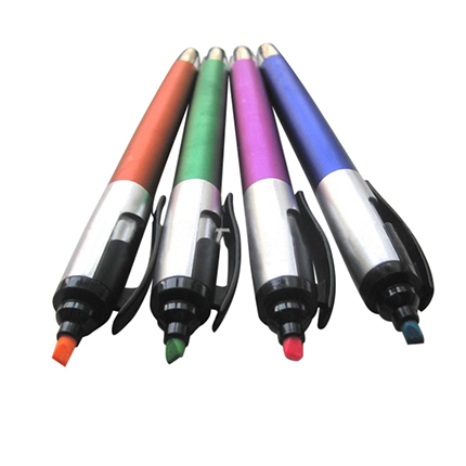 This is a great multifunctional promotional product that combines a ball pen, a highlighter, and a stylus for your smartphones and tablets! It is very comfortable to use, and is customisable to fit your brand image.A must have for every professional! Material - ABS