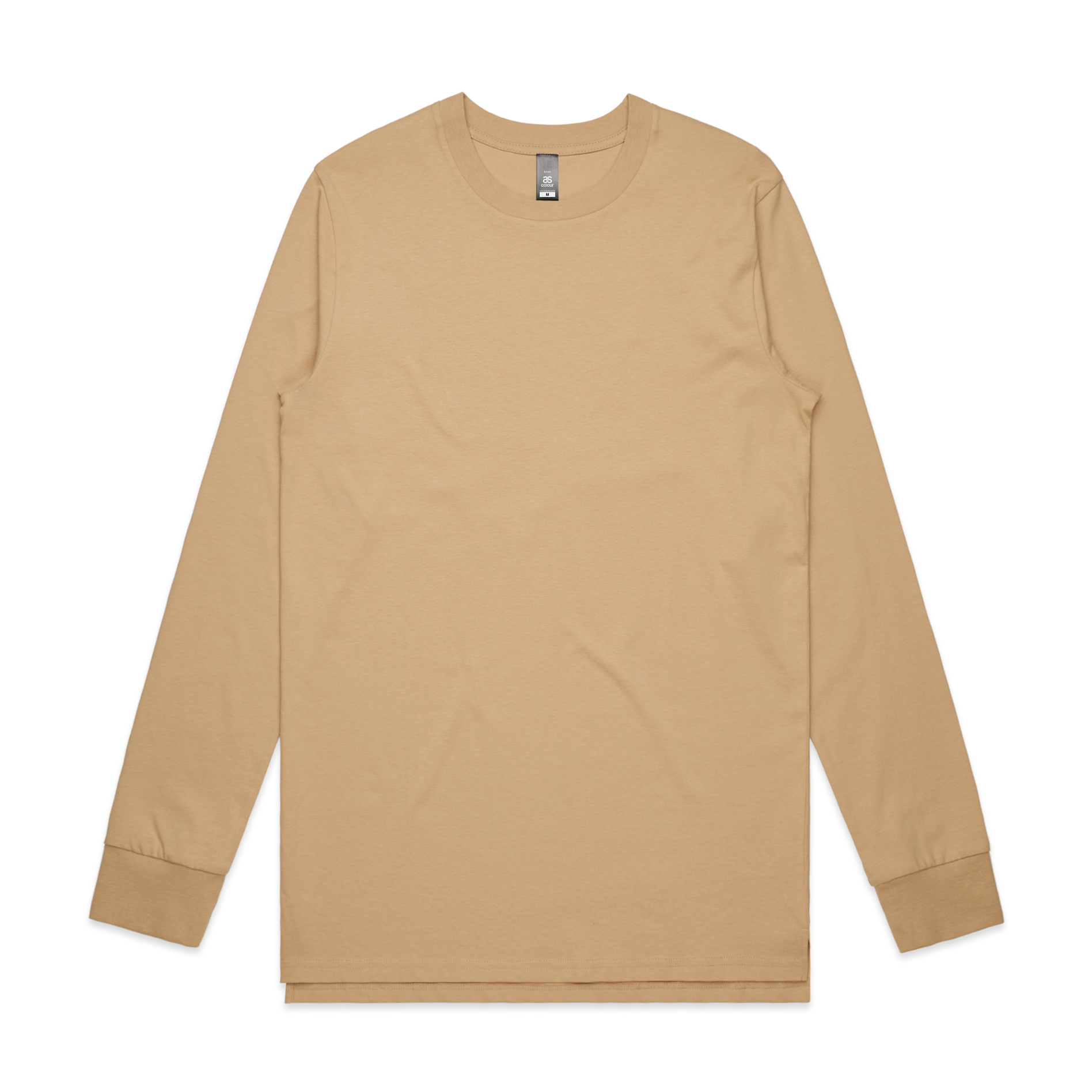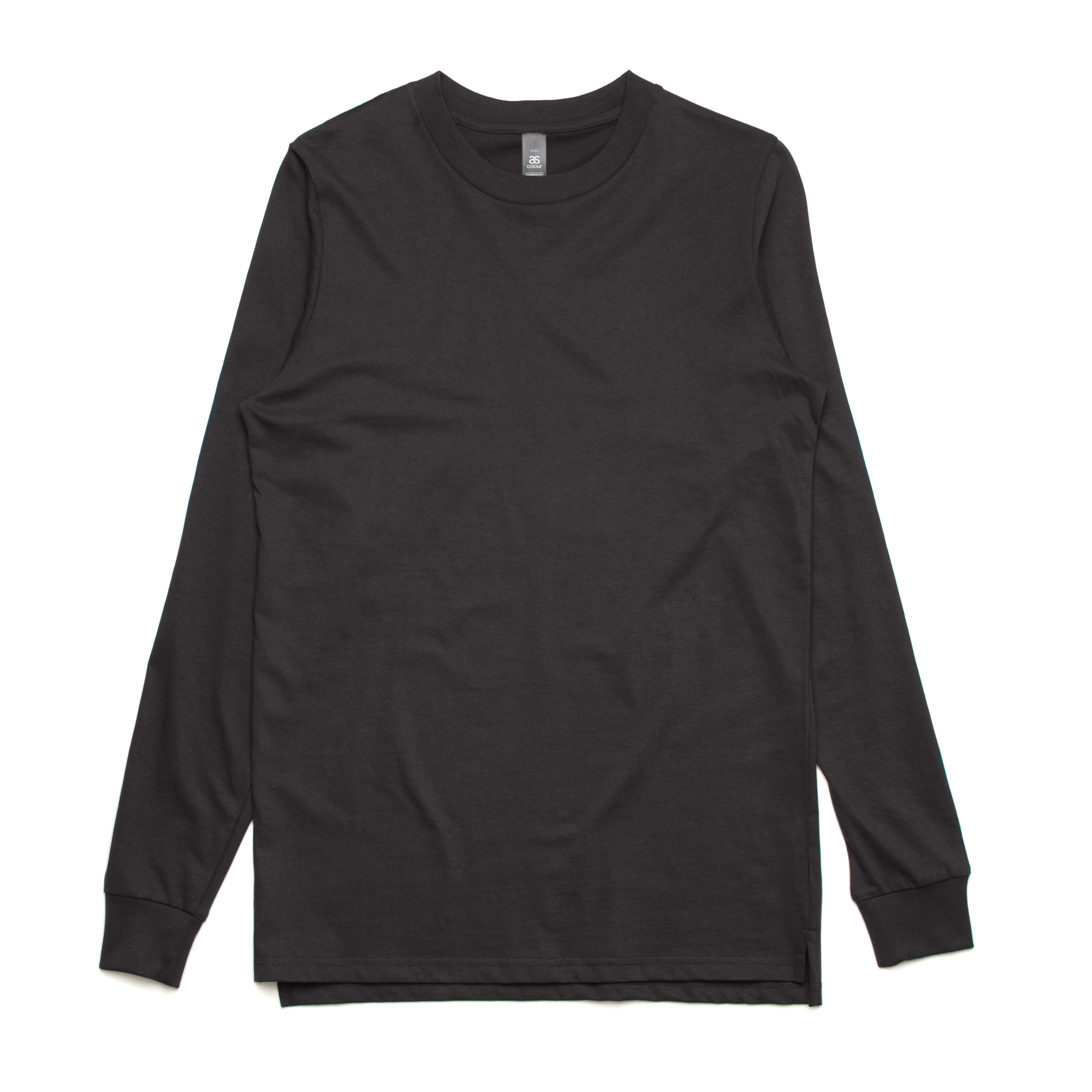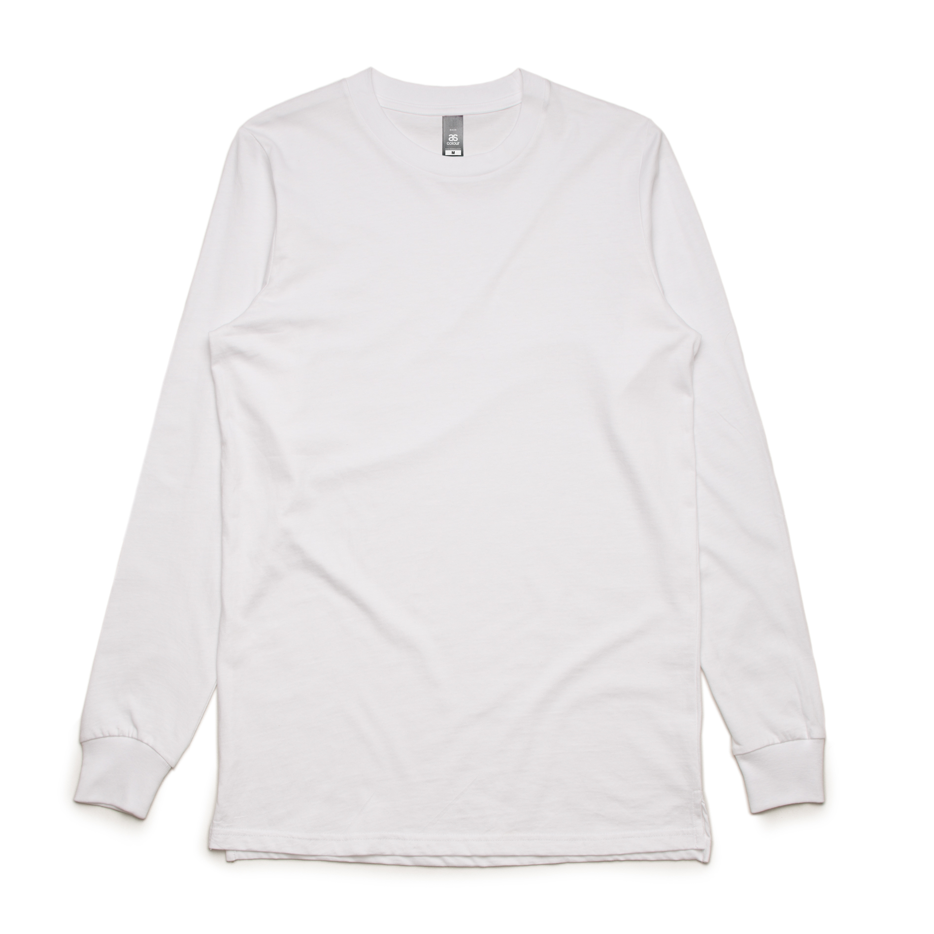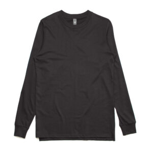 Relaxed fit, crew neck, longer body, cuffed sleeves, split detail at sides, slight drop at back, heavy weight, 200 GSM, 20-singles, 100% carded cotton (marles 15% polyester) , neck ribbing, side seamed, shoulder to shoulder tape, double needle bottom hem, preshrunk to minimise shrinkage