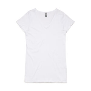 Regular fit, V-neck, capped sleeves, light weight, 150 GSM, 30-singles, 100% combed cotton (marles 15% polyester), self-fabric binding on neck, side seamed, double needle hems, preshrunk to minimise shrinkage