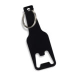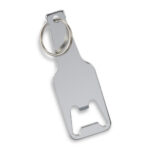 Novelty bottle-shaped aluminium bottle opener with a key ring.