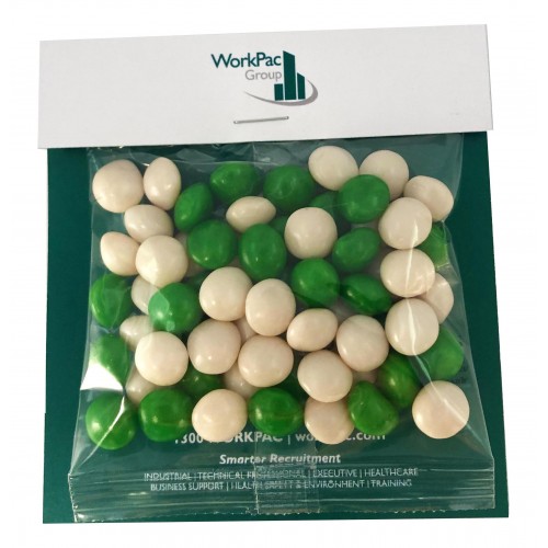 Billboard Card with 50g Chewy Fruit bag stapled to card 250gsm Paper Stock Full Colour/ Double side print Colours Chewy Fruit: Any mix of White, Blue, Green, Red, Yellow & Orange Flavours: White - Mint, Blue - Passionfruit, Green - Apple, Red - Strawberry, Yellow - Pineapple & Orange - Orange