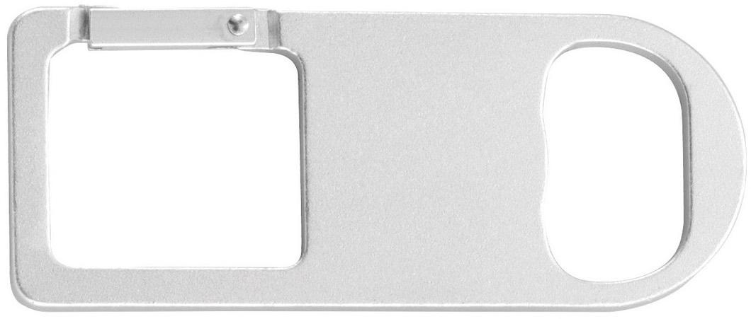 Aluminium carabiner keyring with integrated bottle opener. Registered design