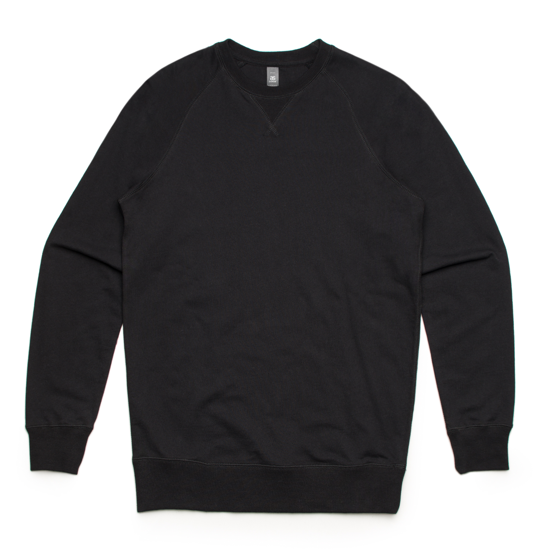 Slim fit, crew sweat, raglan sleeves, light weight, 260 GSM, 75% cotton 25% polyester (non-marles 100% cotton) anti-pill French Terry fleece, yoke insert for back printing, neck and sleeve cuff ribbing, rib insert and stitching detail at front, preshrunk to minimise shrinkage