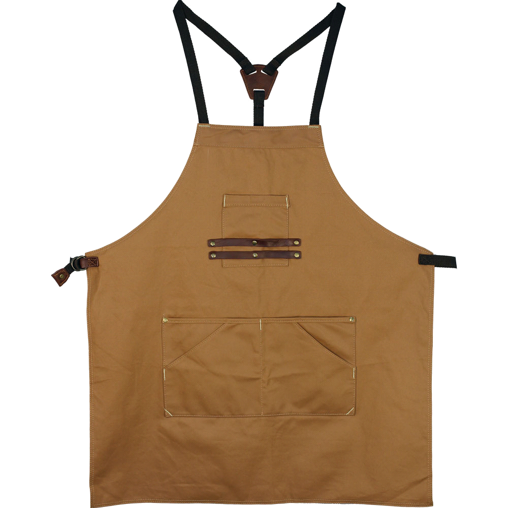 Manufactured from heavy duty waxed canvas with leather trim perfect for the kitchen, BBQ or behind the bar. With convenient pockets to hold your utensils this apron is made from waxed canvas for easy cleaning after working in the kitchen, BBQ or behind the bar.