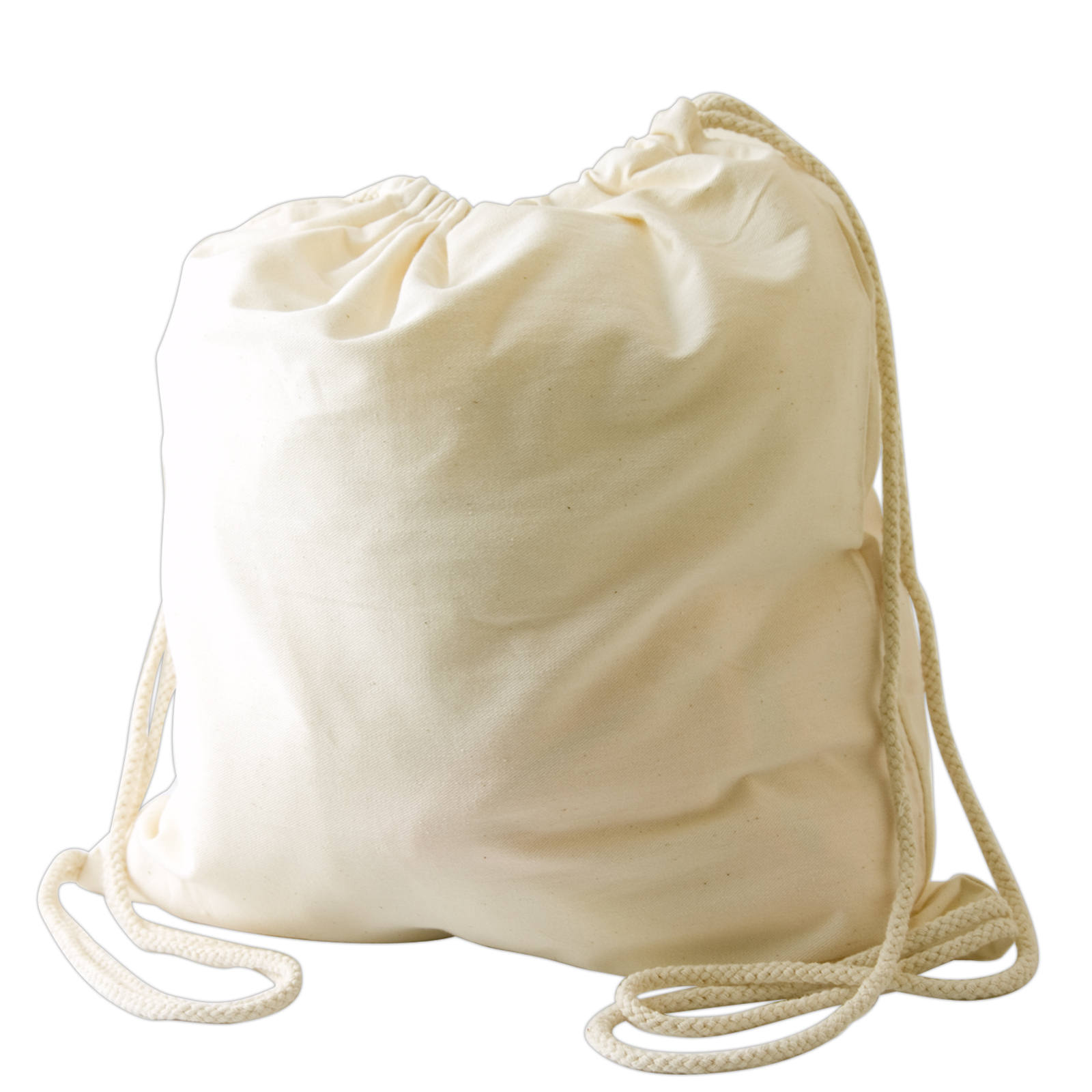 Item Size - 380mmL x 400mmH. Calico library back pack with double cotton rope drawstrings. Use Calico Bags for conventions, trade shows, fairs and sample bags. Ideal for environmental projects as calico (cotton) is a renewable resource and bags are continally re-used. This Product is part of our Green Conceptz Collection which promotes environmentally friendly, and eco friendly messages. Materials: Calico