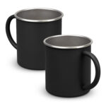 Durable 350ml stainless steel camp mug with a tough powder coated finish, featuring a comfortable round handle and silver trim.