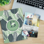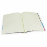 Fully customised A4 size notebook with saddle stitch binding and 32 leaves (64 pages) of 70gsm cream paper which is available lined or unlined. Individual pages can be customised in one colour or full colour for an additional cost. The notebook has a 350gsm cardboard cover which can be branded with stunning edge-to-edge full colour print on the front and back. An optional paper belly band is available and can be branded in full colour. A production lead time of 25 working days applies to this product by air freight and larger orders can be sea freighted on request to reduce the freight cost.