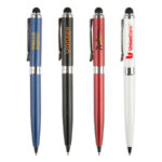 The Canterbury Stylus pen is an elegant brass twist action pen with silver accents and a stylus. Add a touch of elegance to your company's promotional event by featuring this fantastic marketing tool. The stylus works on all touch screen devices; such as smart phones, tablets and iPhones. This product includes black ink.