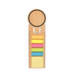 Circle shaped 13cm/5inch bamboo bookmark ruler. 1 block of repositionable notepads with 25 leaves (40mmL x 40mmH) and 5 blocks of assorted adhesive noteflags with 25 leaves per colour. Eco Credentials. Renewable, Sustainable, Printed using reusable energy.