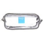 21.5cm x 10.5cm Clear vinyl travel case with zippered closure. Base Gusset expands out to approximately 5.5cm making this bag perfect for school/office supplies, cosmetics, and/or toiletries. Each side gusset as a fabric loop allowing this case to be easily attached to luggage or another bag. Material: Clear PVC