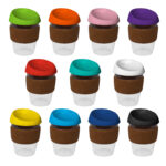 Coffee Cup / Mug 12oz/340ml Clear Plastic Karma Kup Cork Band Silicon Lid Reusable Eco Friendly