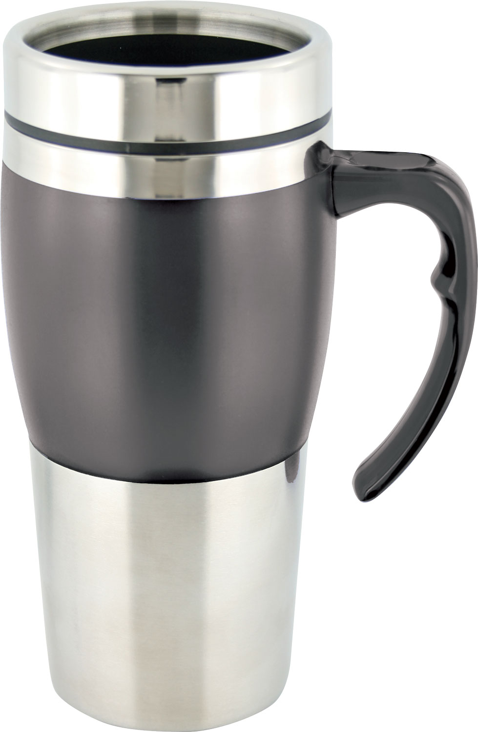 Stainless steel double walled stainless steel travel mug with frosted plastic trim