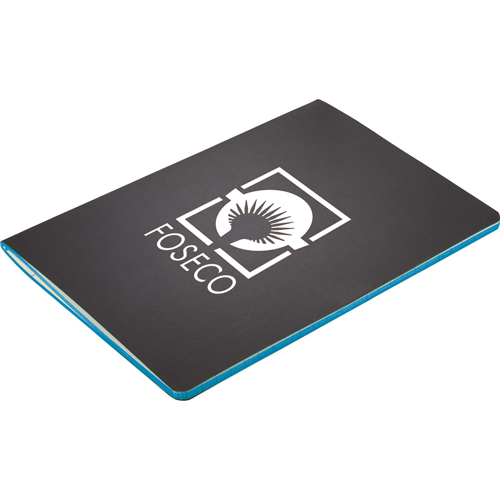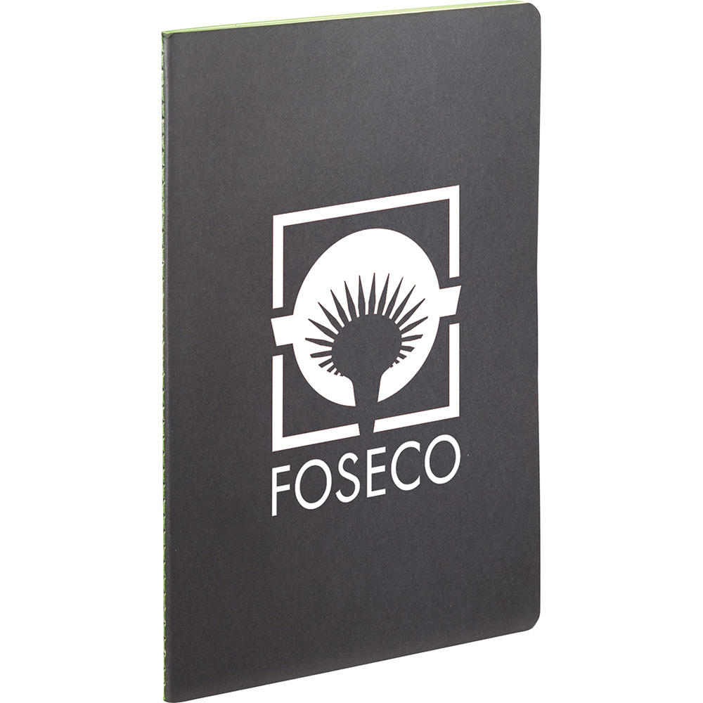 Saddle stitched, paper cover journal with color accent stitching. Painted edge paper. 40 lined sheets of cream paper.