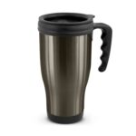 500ml thermal mug with a tough aluminium outer wall and a plastic inner wall. It has a secure plastic push on lid and laser engraves to an oxidised White colour. It is not recommended for dishwasher use. Decoration options: Pad Print | Laser Engraving