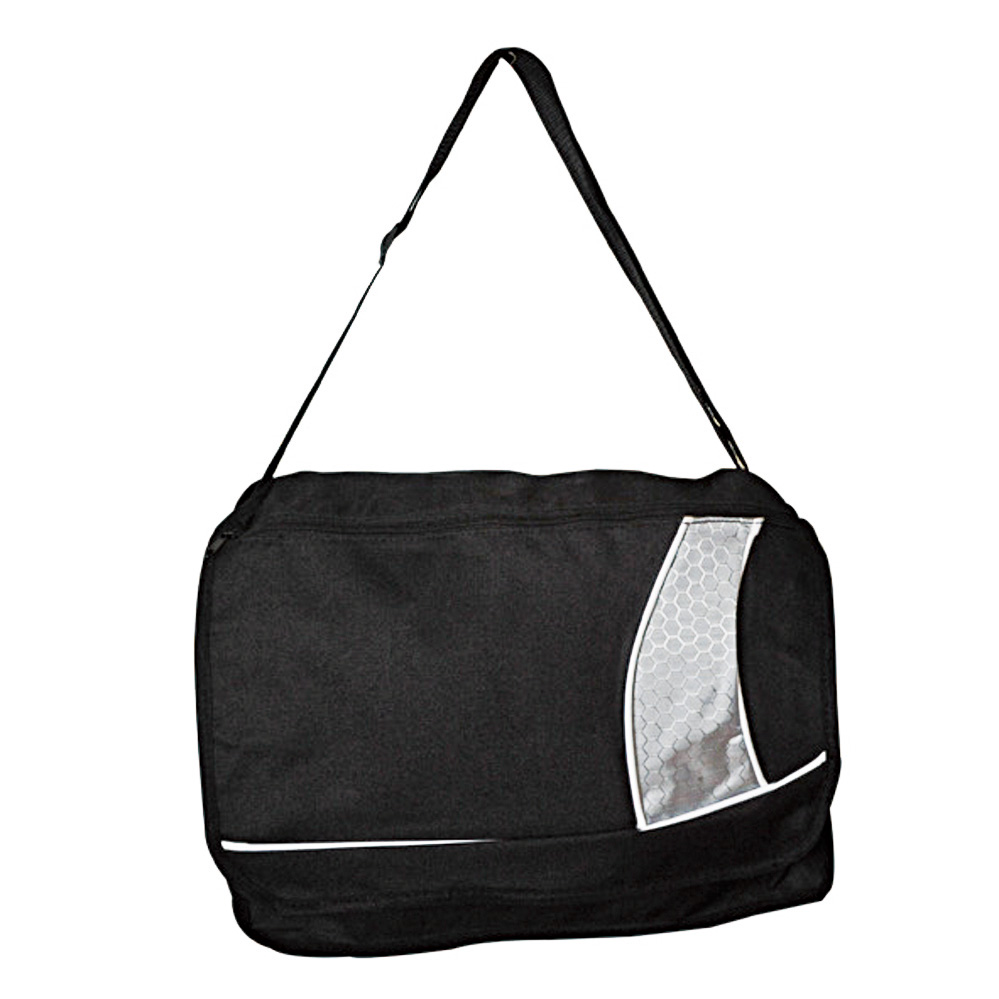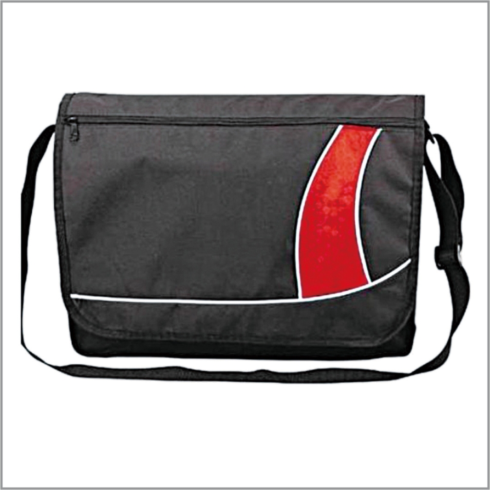 600d polyester, flap closure with velcro, front zippers, shoulder strap, pen holder.
