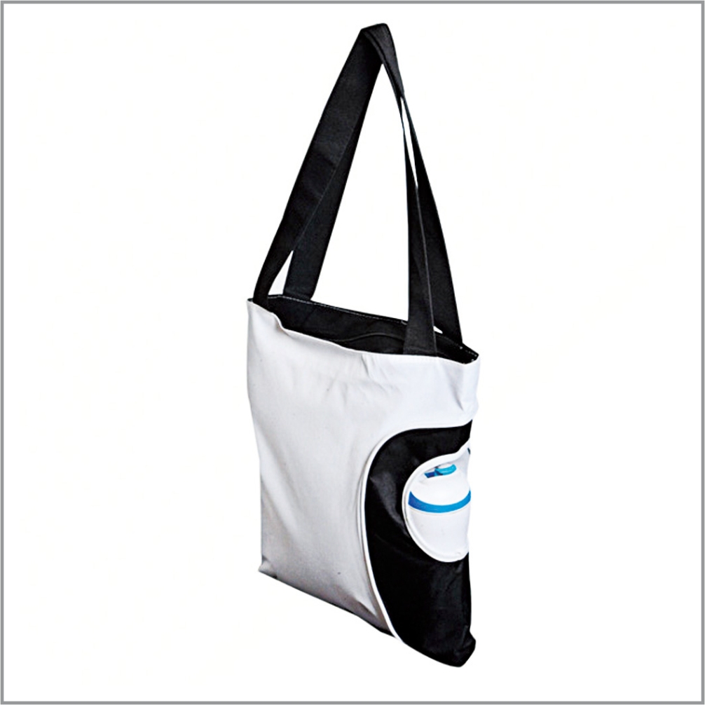 600d polyester, top zipper, side pockets, double shoulder straps.