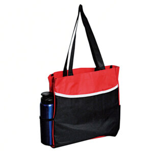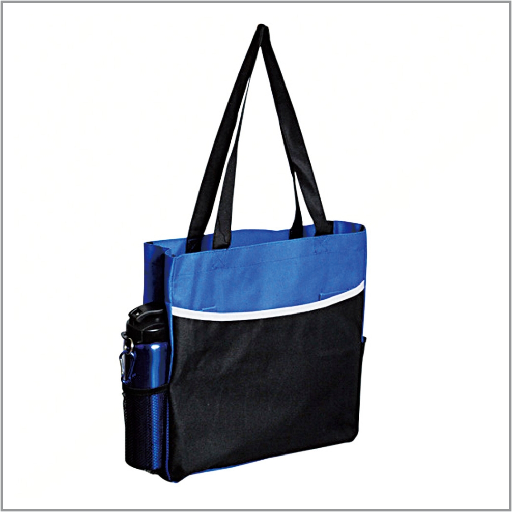 600d polyester, front velcro closure, top zipper, 2 side pockets, pen clip, moblie phone holder, double shoulder straps.