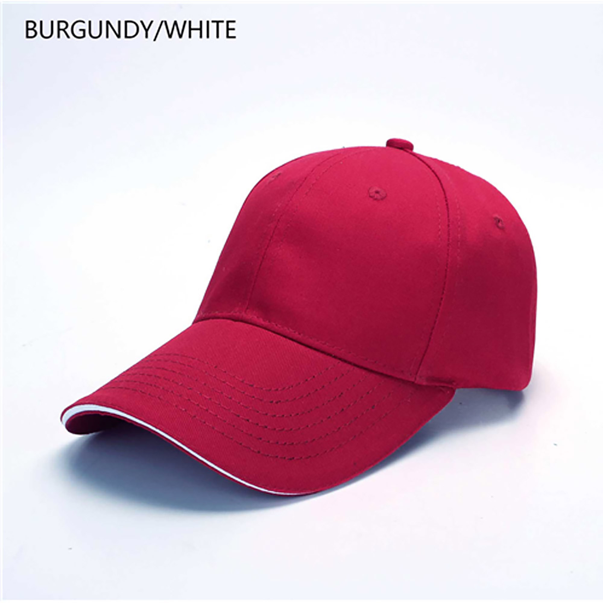 Structured six panel, 100% heavy twill Cotton cap with a white trim in the pre-curved peak, embroidered eyelets, and an adjustable closure with metal buckle which fits most of people. For 3D Embroidery, logo must be simple and large, please check with us before place order. One size fits most people.