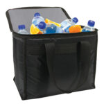 Large size 420D polyester cooler bag, heavy duty webbed carry handles and zip closure