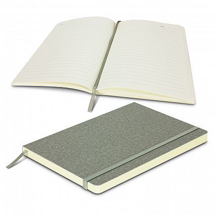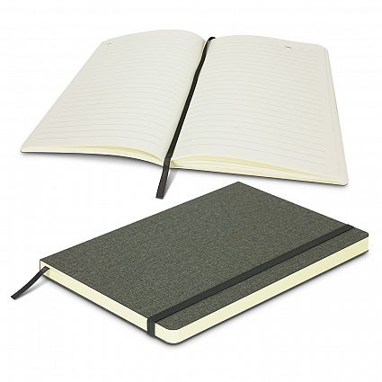 On trend medium size notebook with 80 leaves (160 pages) of high quality lined cream paper. It has a flexible cover that is finished with heather style PU which produces a delightful woven look. Other features include an elastic closure band and a book mark ribbon.