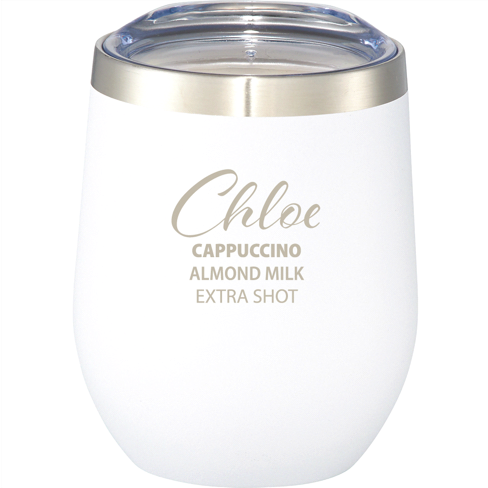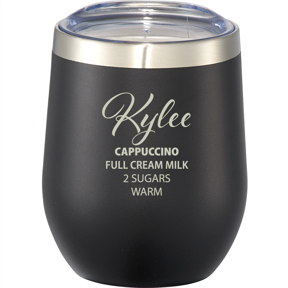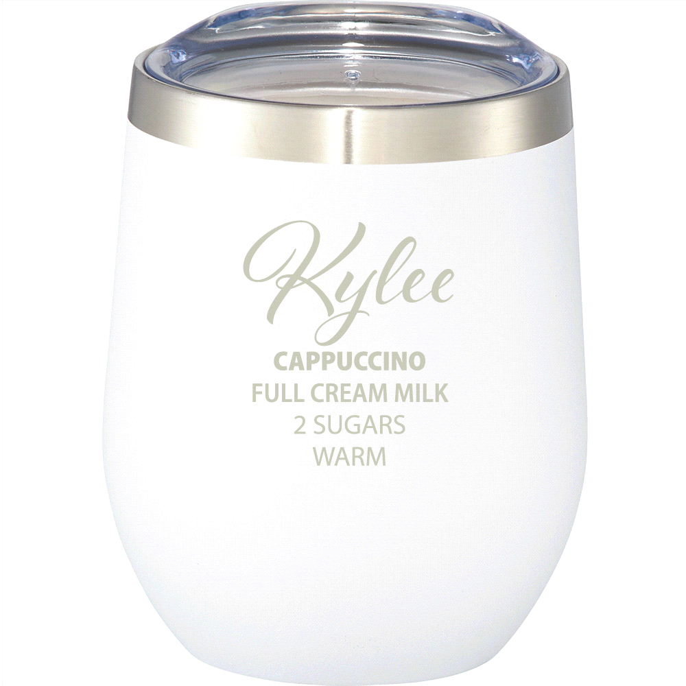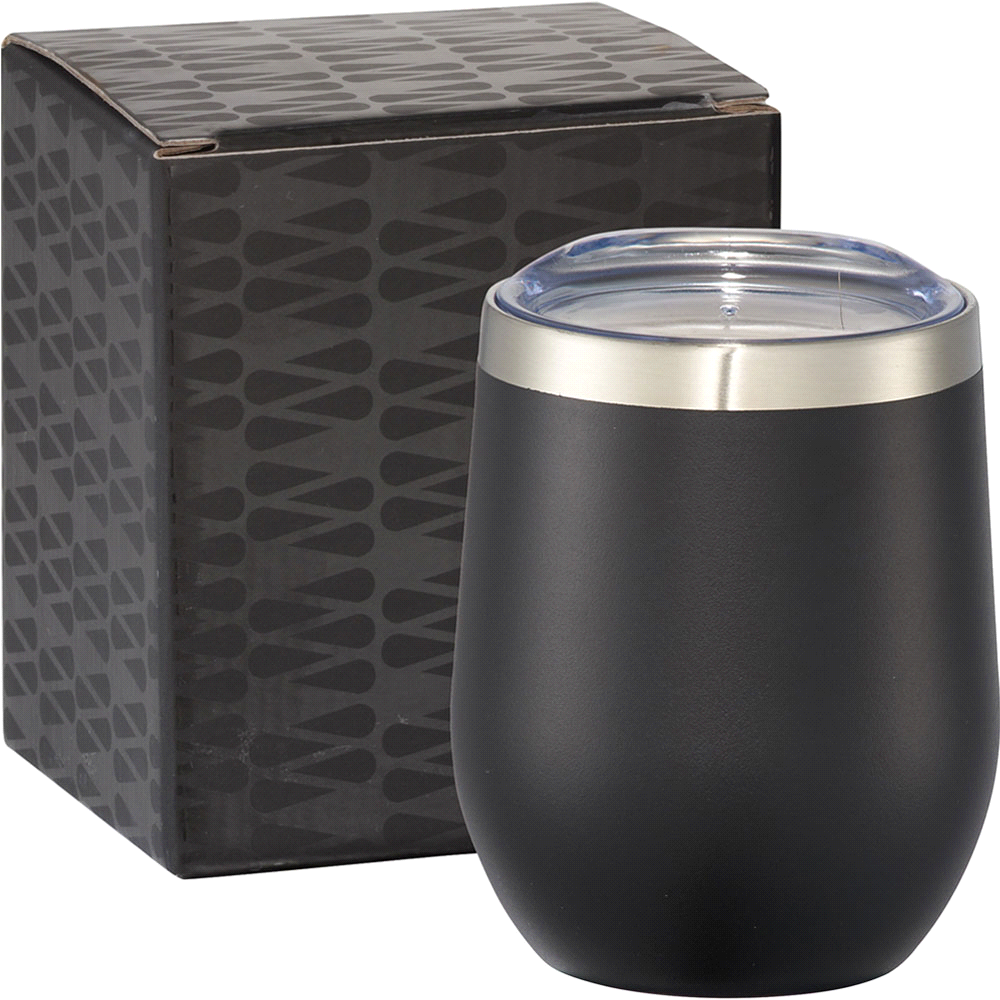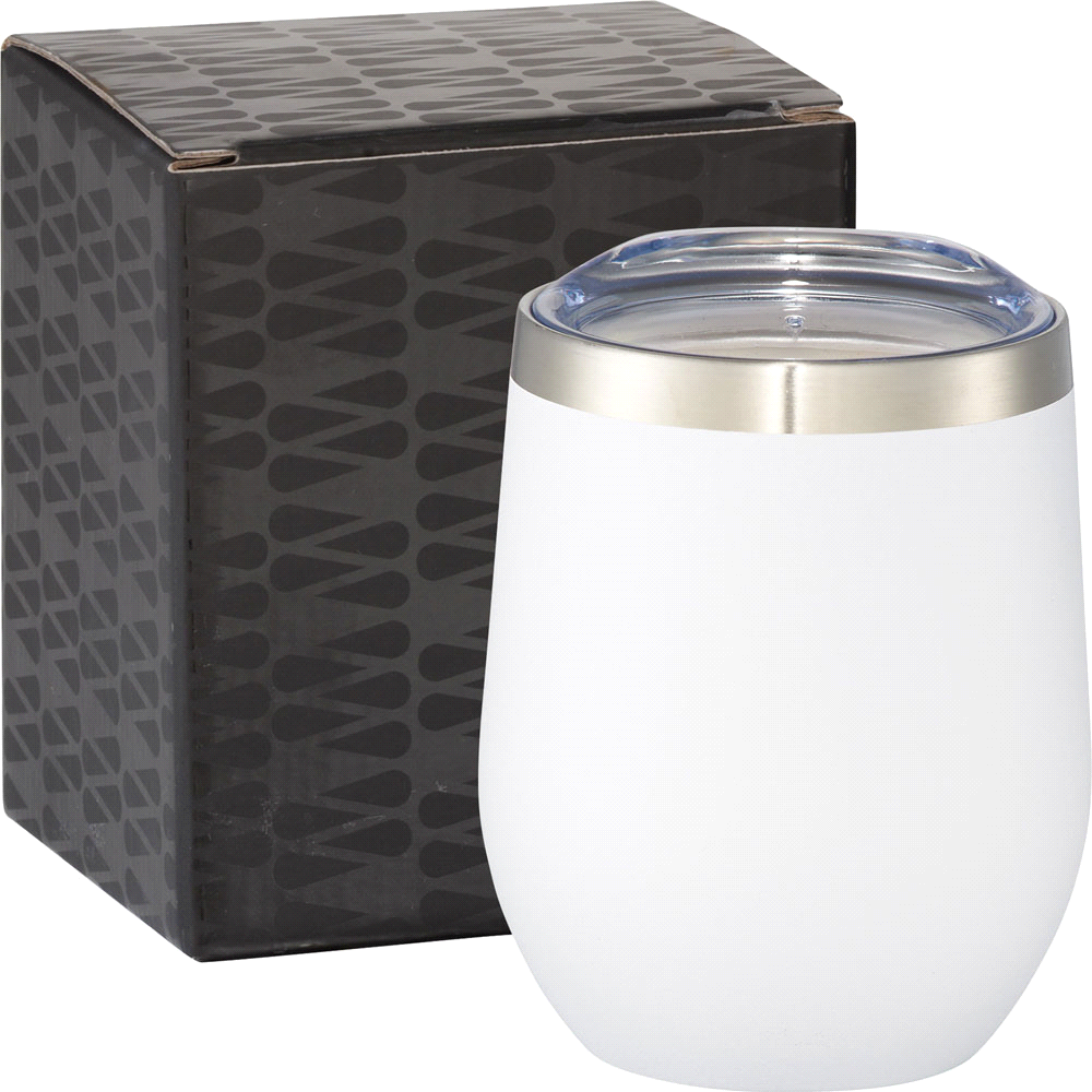 Enjoy your drink at any moment! Durable, double-wall 18/18 stainless steel vacuum construction with copper insulation, which allows your beverage to stay cold for 24 hours and hot for at least 6 hours. The construction also prevents condensation on the outside of the tumbler. Perfect accessory for wine. Easy sipping, push-on lid. Wide opening for comfortable filling and pouring. Durable powder spray colour. 350ml capacity.