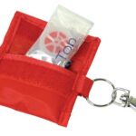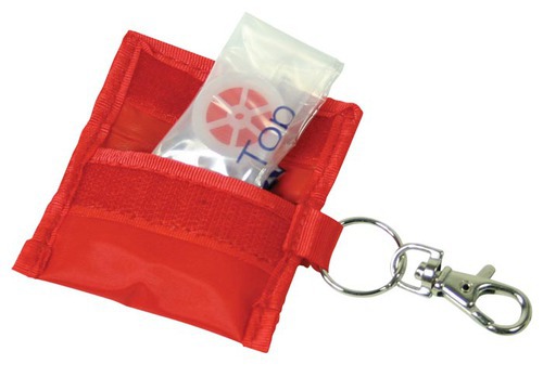 Premium single use emergency CPR Mask packed in a pouch with Keyring. TGA Approved