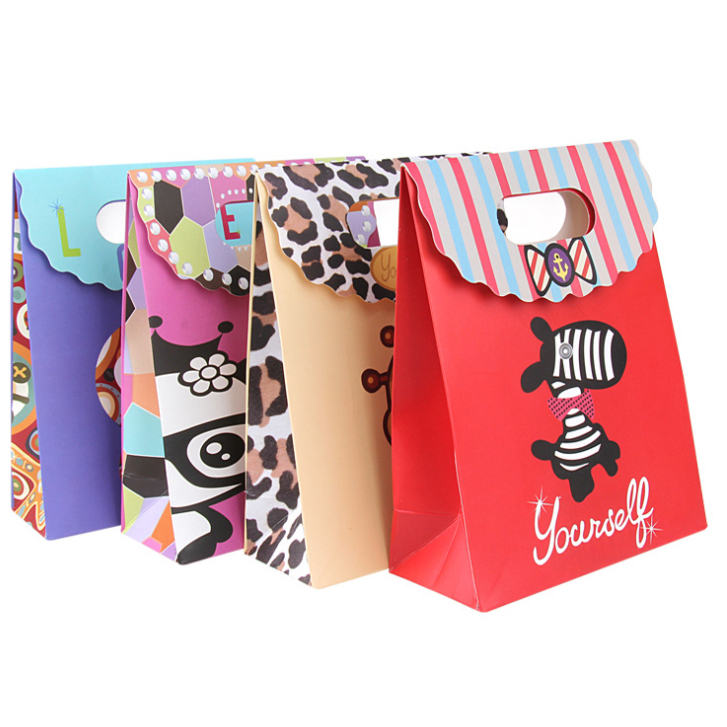 Die cut handle bags with flap, are available in different sizes to suit all your needs. Ideal for giveaway promo. Can be ordered unprinted or custom printed, including screen print and full colour print options are available. Add on stickers are also available in different shapes. Offered in a variety of paper weights, bag dimensions and graphics to meet your needs. Material - 210g Paper