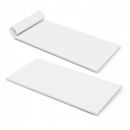 Vertical DLE size note pad which is padded on the short edge and fits in a standard DLE envelope for mailing. It has with 50 leaves (100 pages) of good quality 70gsm paper and a cardboard back. The pad is printed using four colour process which gives the option of unlimited spot colours or stunning full colour at no extra cost but PMS colour matches are only approximate. The artwork can bleed off on all four sides and a production lead time of 10 working days applies to this product. This item can only be ordered in the quoted order quantities.