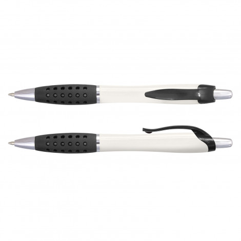 Retractable plastic and metal ball pen with a soft rubber grip. Black ink refill with 1200 metres of German manufactured DOKUMENTAL ink and a tungsten carbide ball for improved writing quality. Decoration options: Pad Print | Direct Digital