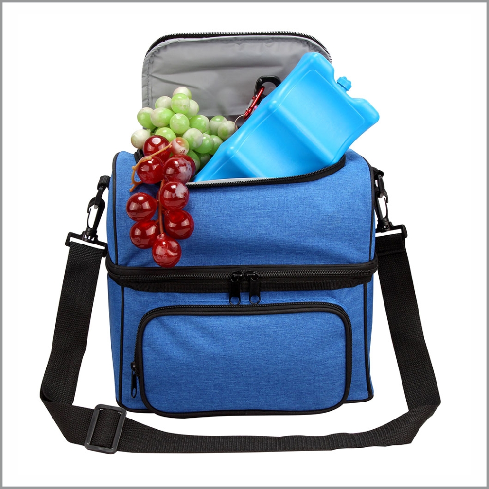 Double Deck Deluxe Cooler Bag Material: 300D Polyester two main zipper compartments one removable front zipper pocket easier for decoration 4mm epe foam with peva lining PP piping trim body