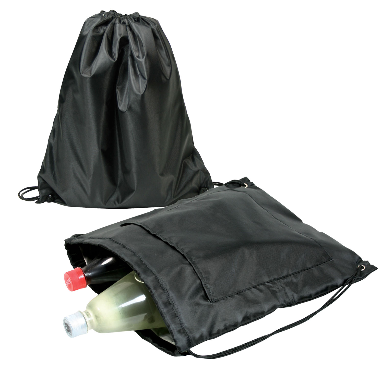 The drawstring design allows this insulated cooler bag to be worn as backpack or carried by the hand. It has a large main compartment, front pocket for ease of branding and metal eyelets