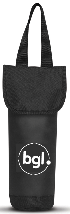 Luxury single bottle wine cooler carry bag. Has a polyester outer construction with PE insulation foam and a waterproof PEVA inner liner. . Decoration options: Screen Print | Digital Transfer